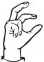 На ћирилици написано ИРИНА МИЗДРАК састоји се из 12 слова [?]. Исписано ћириличном једноручном азбуком за глувонеме: